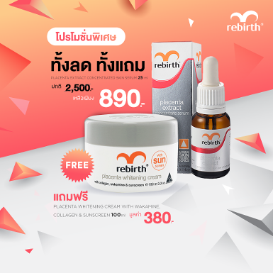Placenta concentrate serum ลดพิเศษและฟรี Rebirth Whitening Cream